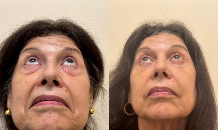 Endoscopic temporal brow lift, upper eyelid and lower eyelid blepharoplasty.